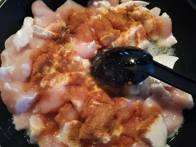 Fileta kroimy w kostkę i smażymy na rozgrzanym